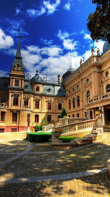 While his workers may have been squashed into tenements, make no mistake that their boss lived the high life. Poznański had the sort of egocentric, hyper-wealthy lifestyle associated with modern day oligarchs, and his palaces and mansions found around town are testimony to this. His HQ on Ogrodowa 15 was the benchmark of flash, and stacked with priceless treasures and frequently the home of high society functions. Designed by Adolf Seligson the L-shaped structure originally held a 770m2 winter garden topped with a glass roof, as well as landscaped gardens out back. As most other industrialists of the age, Poznański had his residence built right next to his factory, allowing him the opportunity to watch his workforce marching to work each morning.