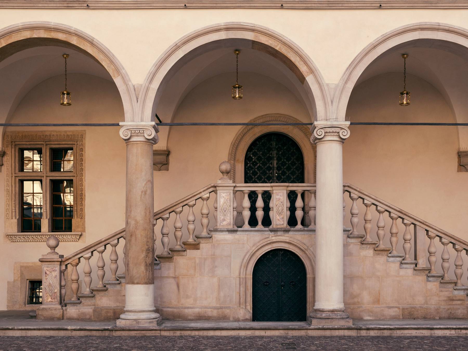 One of the finest examples of Renaissance architecture in Poland, Wawel’s iconic courtyard is emblematic of Poland’s ‘Golden Age.’ With the arrival of the Italian Renaissance in Poland in the early 16th century, solidified by King Sigismund I’s marriage to Princess Bona of the Milanese House of Sforza in 1518, a new palace was commissioned by King Aleksander Jagiellończyk (reigned 1501-06) and his brother Sigismund I (r. 1506-48) to replace the existing Gothic residence at Wawel. Italian architects Francesco Fiorentino and Bartolommeo Berrecci oversaw much of the construction, which features open cloisters, supported by slender columns, allowing free movement between the royal apartments and state rooms that surround the central courtyard, which could be used for court celebrations, theatre performances and a variety of other functions.