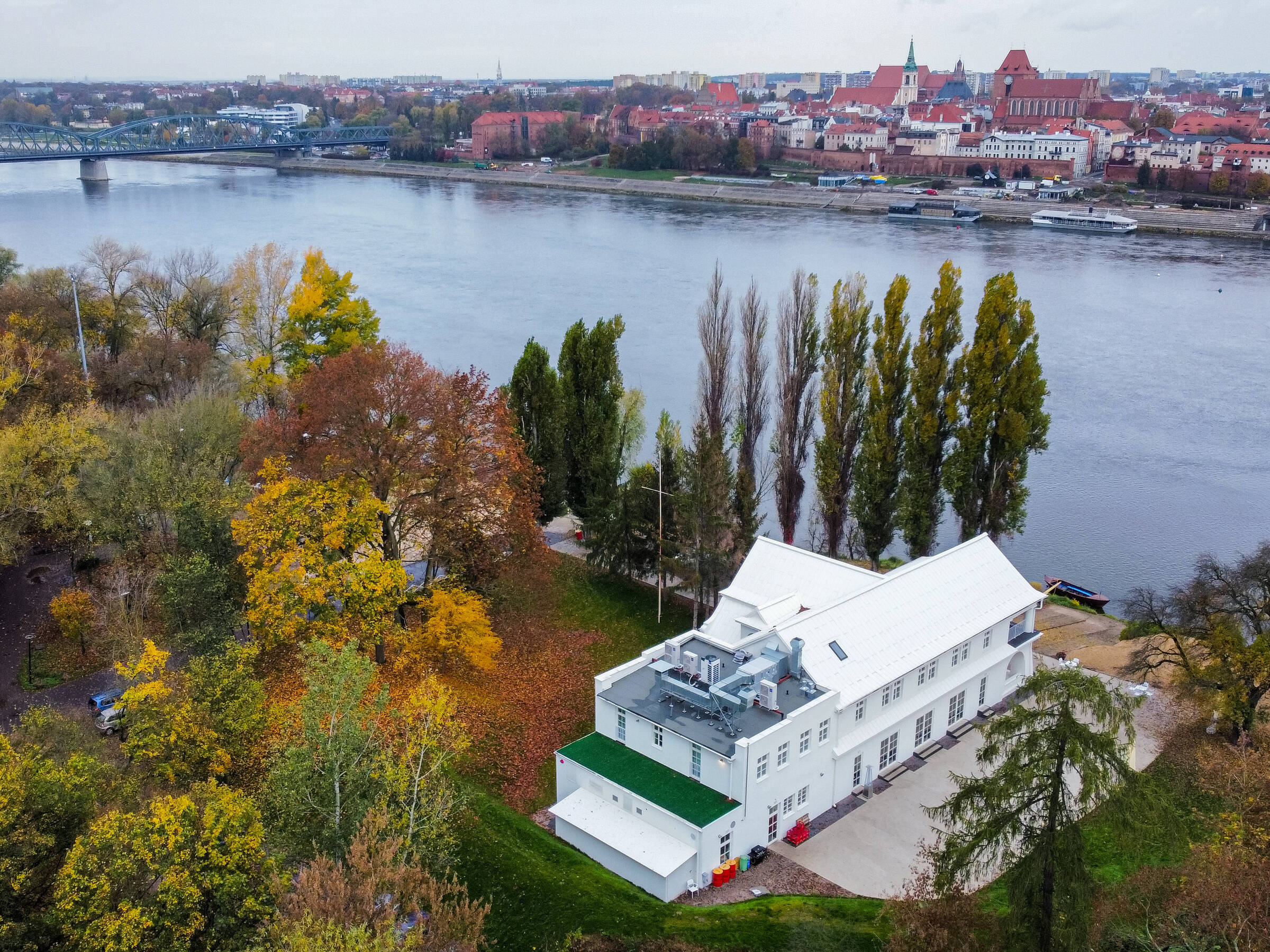 Located across the Vistula on the Kępa Bazarowa side of Toruń, Pałac Widokowy (The View Palace) is named as such for its idyllic panorama of the city's medieval old town, one of Poland’s seven wonders and a UNESCO world heritage site. This unique restaurant, banquet and conference facility, located in a lavish manor house, has been designed for comfort and elegance, ideal for family gatherings, romantic dinners, and business meetings. It also hosts weddings, christenings, communions, and conferences. Guests can enjoy direct access to a serene garden and beach, creating a perfect blend of sophistication and natural beauty for any occasion.
